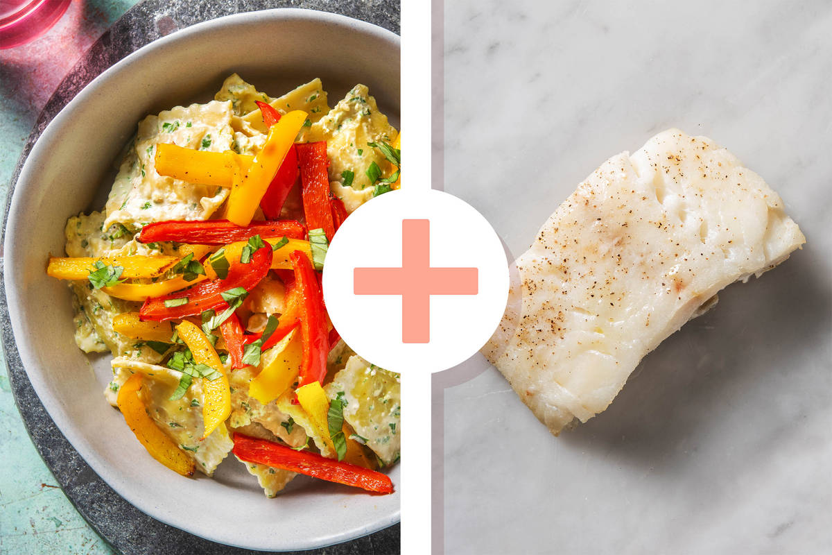 Extra Leckerbissen! Deine Agnolotti mit Basilikumfüllung erfahren heute ein Upgrade durch leckeren Kabeljau. So verwöhnst Du Dich ganz besonders nach einem langen Arbeitstag. Das aromatische Highlight dazu ist Dein frisch zubereitetes Walnusspesto, das perfekt mit den gebackenen Paprika zusammenpasst. Lass es Dir schmecken!