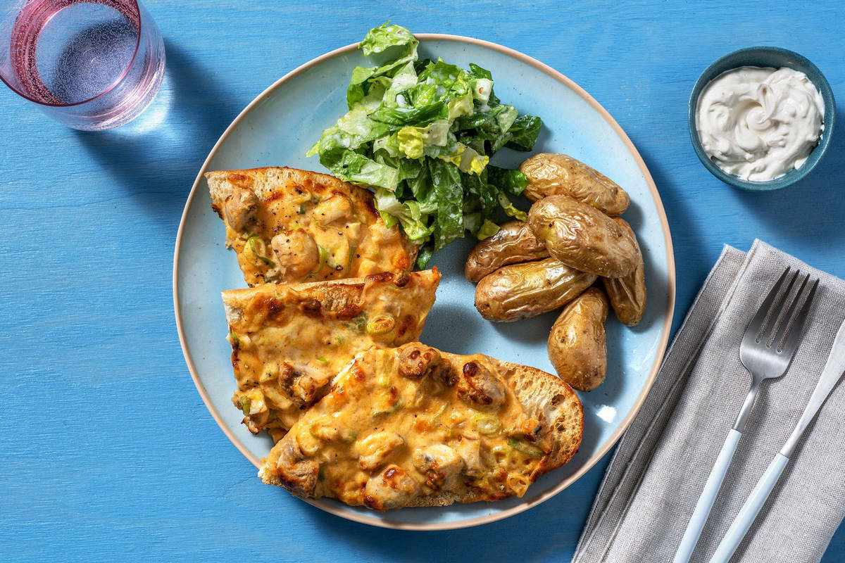 In einer großen Schüssel Champignons, Frischkäse, Gewürzmischung „Hello Paprika“, geschnittene Frühlingszwiebel, Käse-Mix und die Hälfte der Worcester Sauce miteinander vermengen. Baguette waagerecht aufschneiden und beide Hälften mit der Käse-Pilz-Mischung belegen. Die Baguette-Hälften danach für 15 – 18 Min im Ofen knusprig aufbacken, bis der Käse zerlaufen und leicht gebräunt ist.
