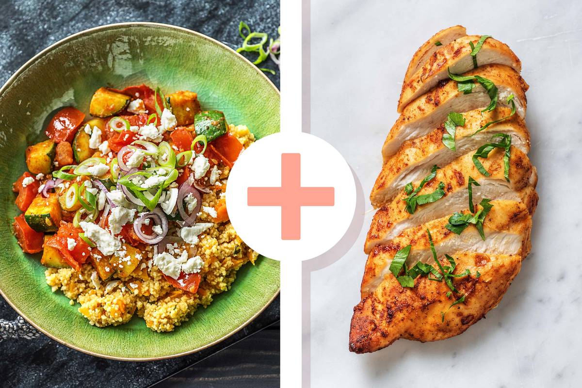 Ein Hoch auf den Extra Leckerbissen: Denn mit einer saftigen Harissa-Hähnchenbrust auf Deiner bunte Couscous-Pfanne machst Du trister Winterstimmung ganz schnell den Garaus. Die Zubereitung ist ganz einfach: Einfach das Gemüse unkompliziert fertig schnippeln und Dich dann ans Kochen machen. Nebenbei brätst Du Deine marinierte Hähnchenbrust an. Als cremiges Topping ist sogar noch Hirtenkäse mit dabei! So kannst Du Dich im Handumdrehen glücklich schlemmen.