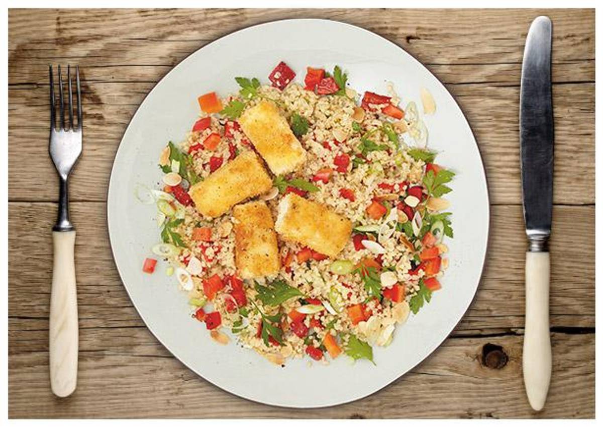mit Paprikavariationen, Mandelblättchen und paniertem Feta