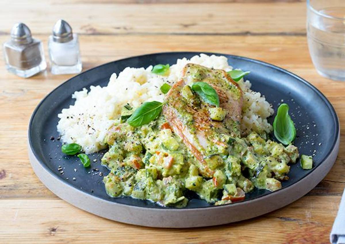 mit selbstgemachtem Pesto an Risotto