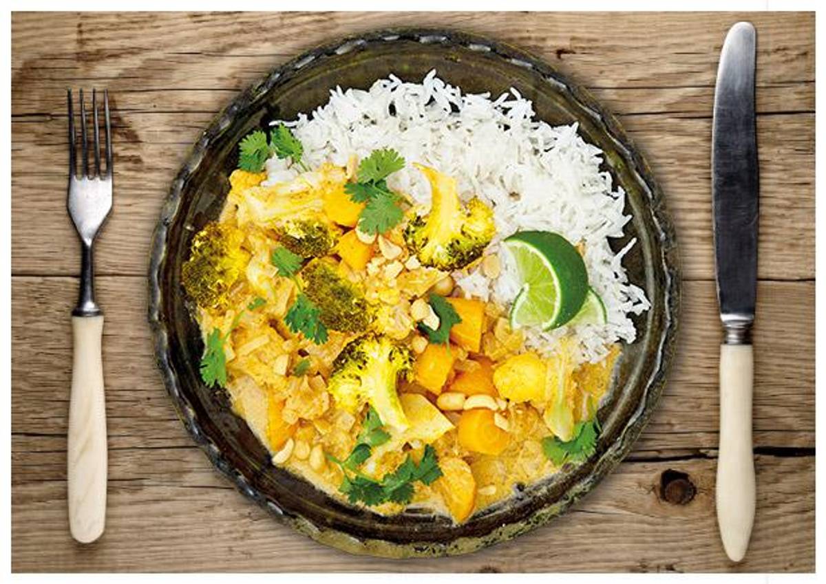 Gemüse-Basmatireis Eintopf in cremiger Roter Curry Soße
