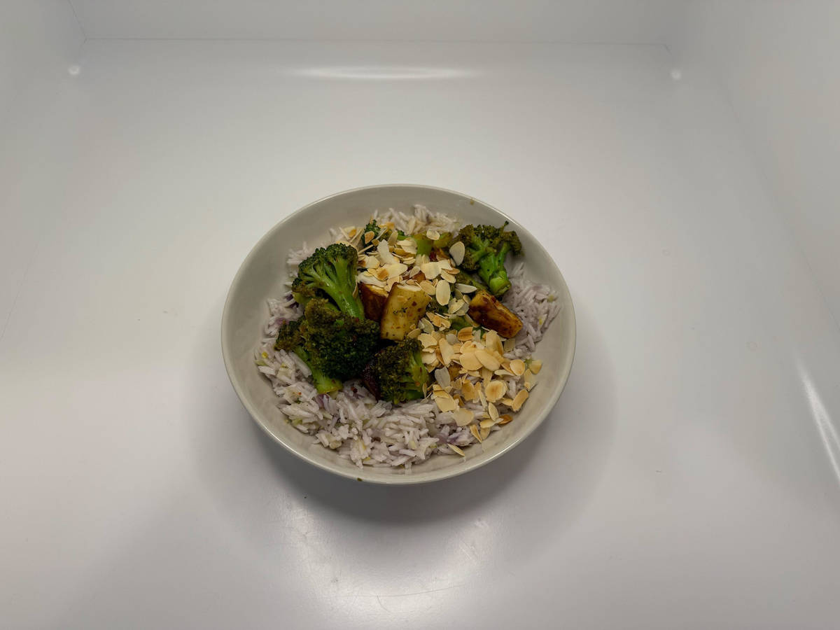 Reis auf tiefe Teller verteilen. Brokkoli-Halloumi-Pfanne darauf anrichten, mit Joghurt und Mandeln toppen und mit restlichen Zitronenvierteln genießen.