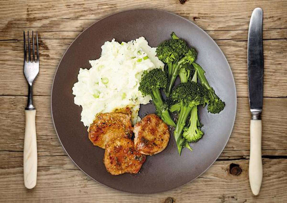 mit cremigem Frühlingszwiebel-Kartoffelpüree und Brokkolini