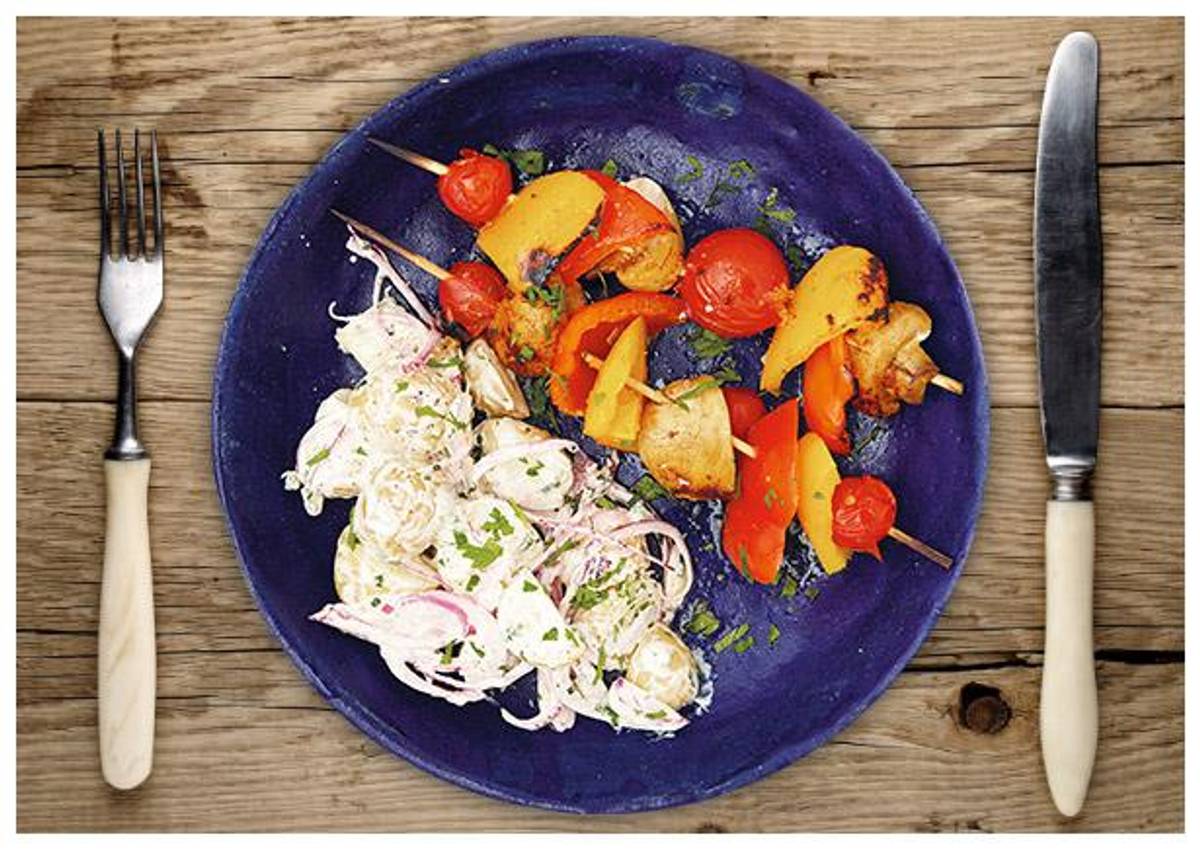 serviert mit Kräuter-Drilling-Kartoffelsalat