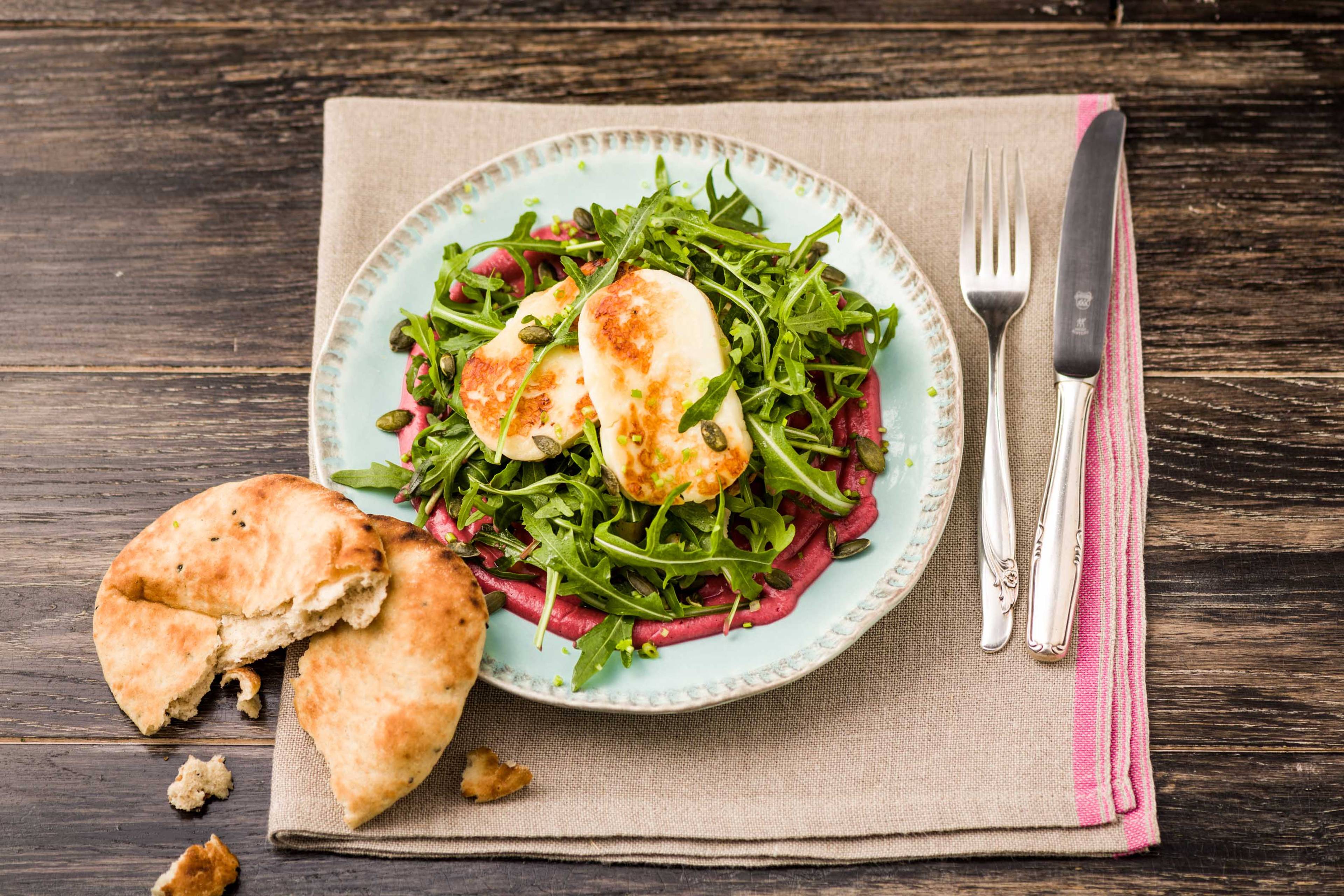 Gnocchi auf Teller verteilen und mit Salat, geraspeltem Hartkäse und Kürbiskernen toppen.