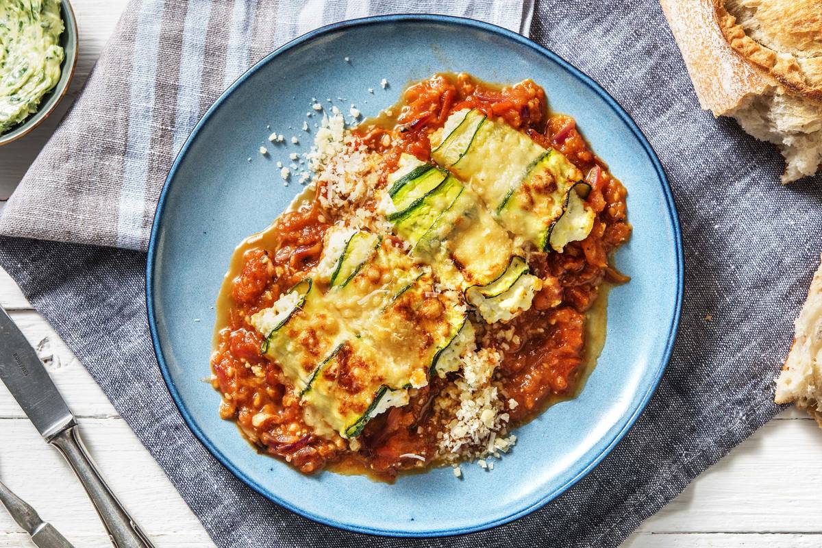 Kennst Du schon Involtini? Sie stehen häufig in italienischen Speisekarten und sind die mediterrane Version der uns bekannten Rouladen. Heute haben wir Dir eine ganz besondere Version mitgebracht: Zucchini-Involtini mit einer frühlingsfrischen Ricotta-Zitronen-Füllung. Der Clou: Erst bereitest Du eine besonders aromatische Tomatensoße im Backofen vor, dann überbackst Du die Involtini auf dieser Soße und mit Hartkäse nochmal im Ofen. Guten Appetit!