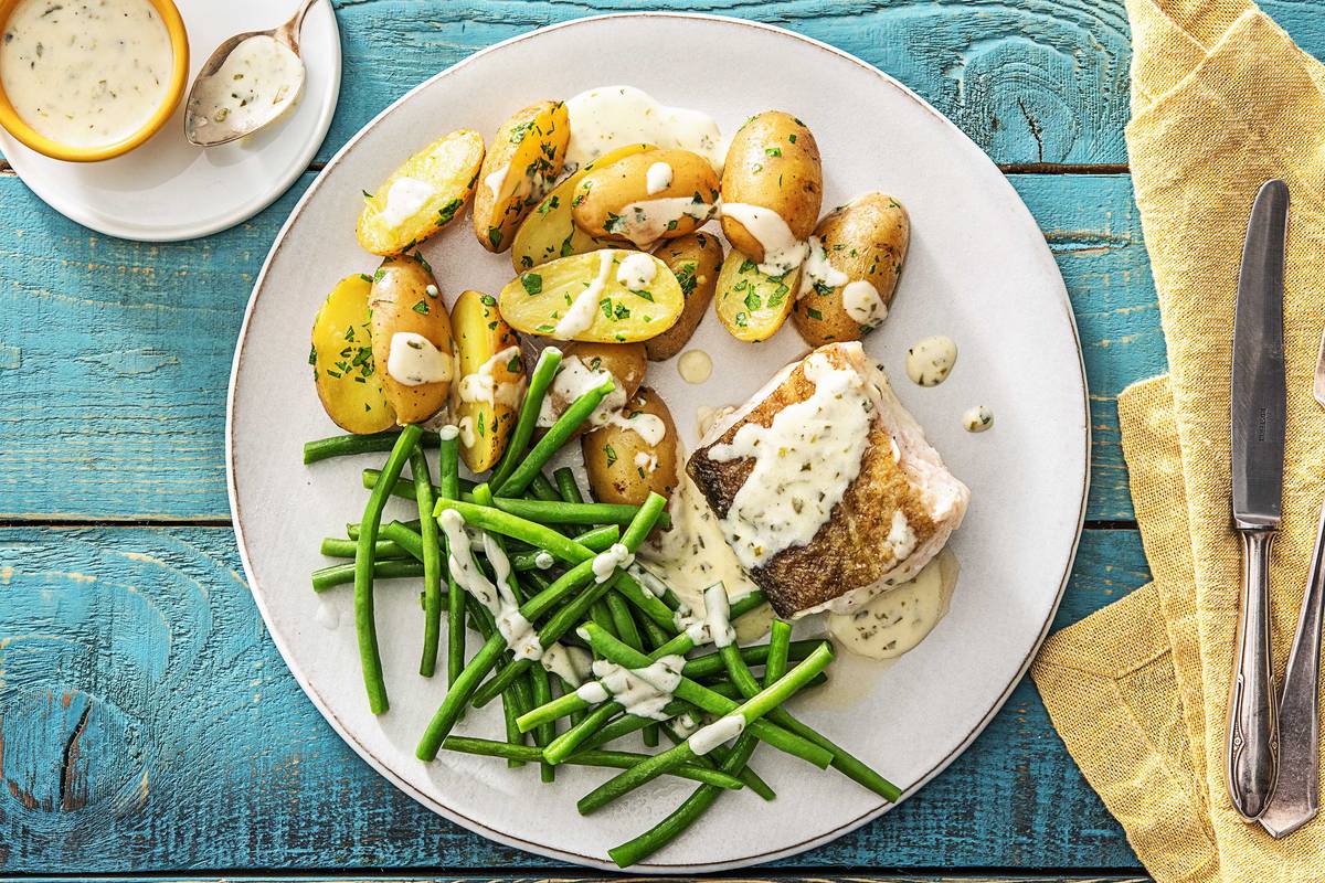 Manchmal muss es einfach klassisch sein! So wie heute: Es gibt traditionelle Petersilienkartoffeln als Sättigungsbeilage, frische Buschbohnen und eine feine Estragonsoße, die perfekt zum Herzstück auf Deinem Teller passt – dem Kabeljau. Und einen kleinen Küchenkniff bei der Zubereitung haben wir Dir auch mitgebracht, denn Du garst Kartoffeln und Bohnen gemeinsam, wodurch sich Dein Abwasch in Grenzen hält. Guten Appetit!