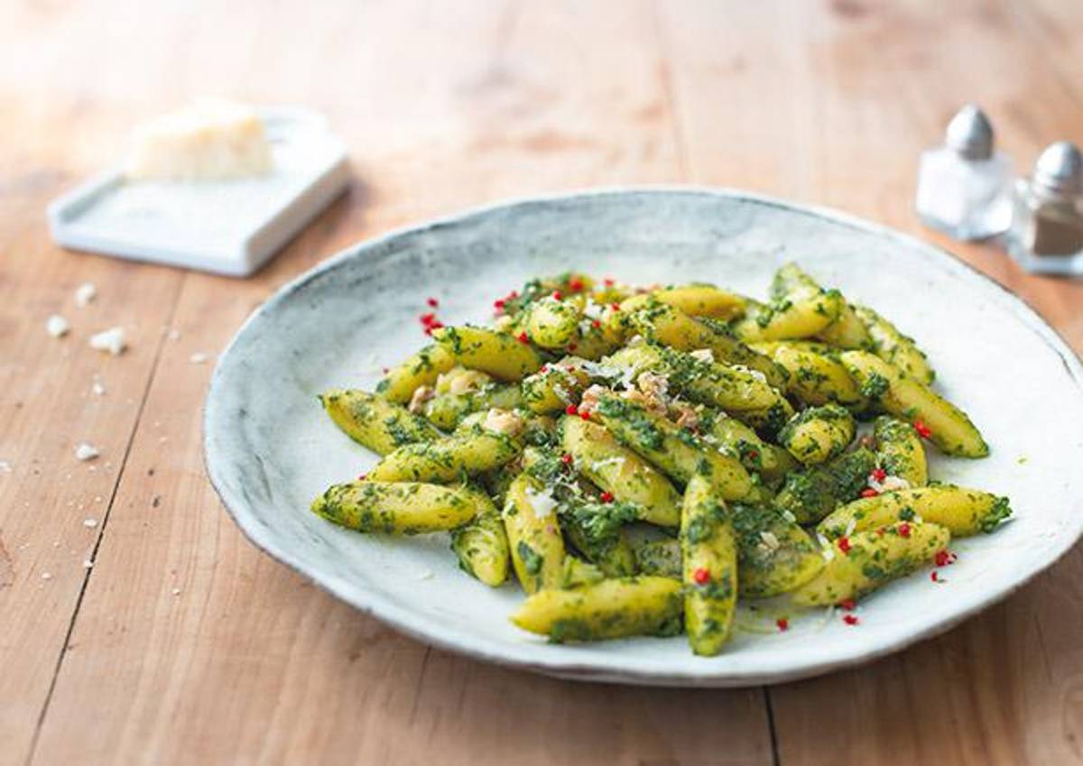 mit Walnuss-Spinat-Pesto und einem leichten Chilikick