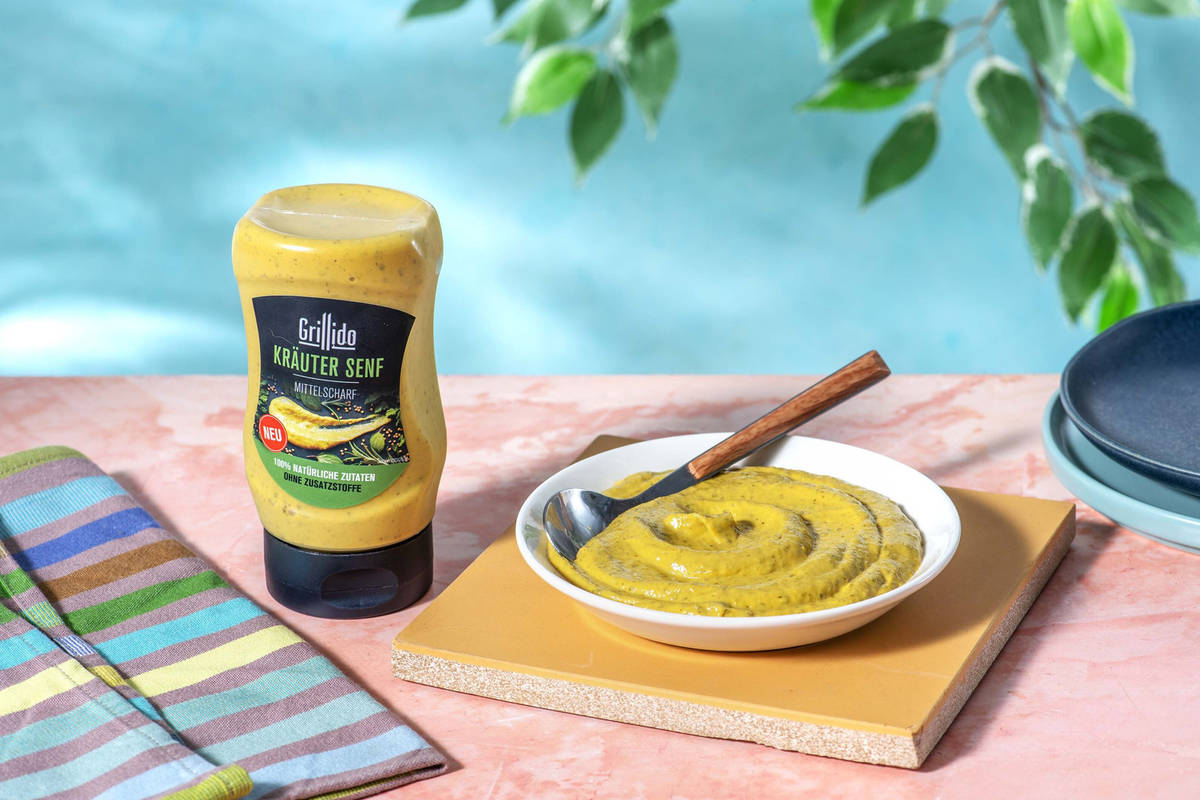 Senf mit verschiedenen Kräutern verfeinert Zutaten: 90% Senf (Wasser, Senfsaat, Branntweinessig, Salz, Zucker, Gewürze, Karamellzuckersirup, Gewürzextrakt), Agavendicksaft, 5% Kräuter (Petersilie, Schnittlauch, Estragon). Lagerung: Gekühlt bei 2 – 7 °C. Herkunft: Deutschland Inverkehrbringer: Grillido GmbH | Karlstraße 96 | 80335 München