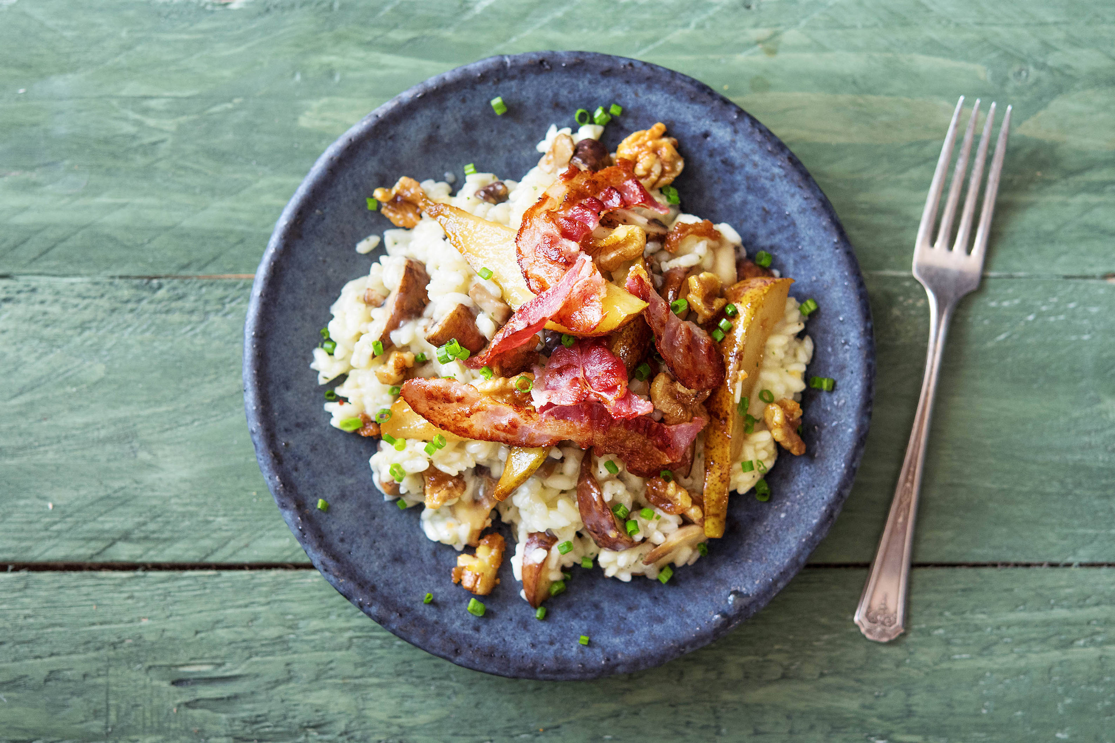 Abgekühlte Birnen in Dessertgläser verteilen. Schokocreme darüber geben und mit Pekan-Crunch toppen.