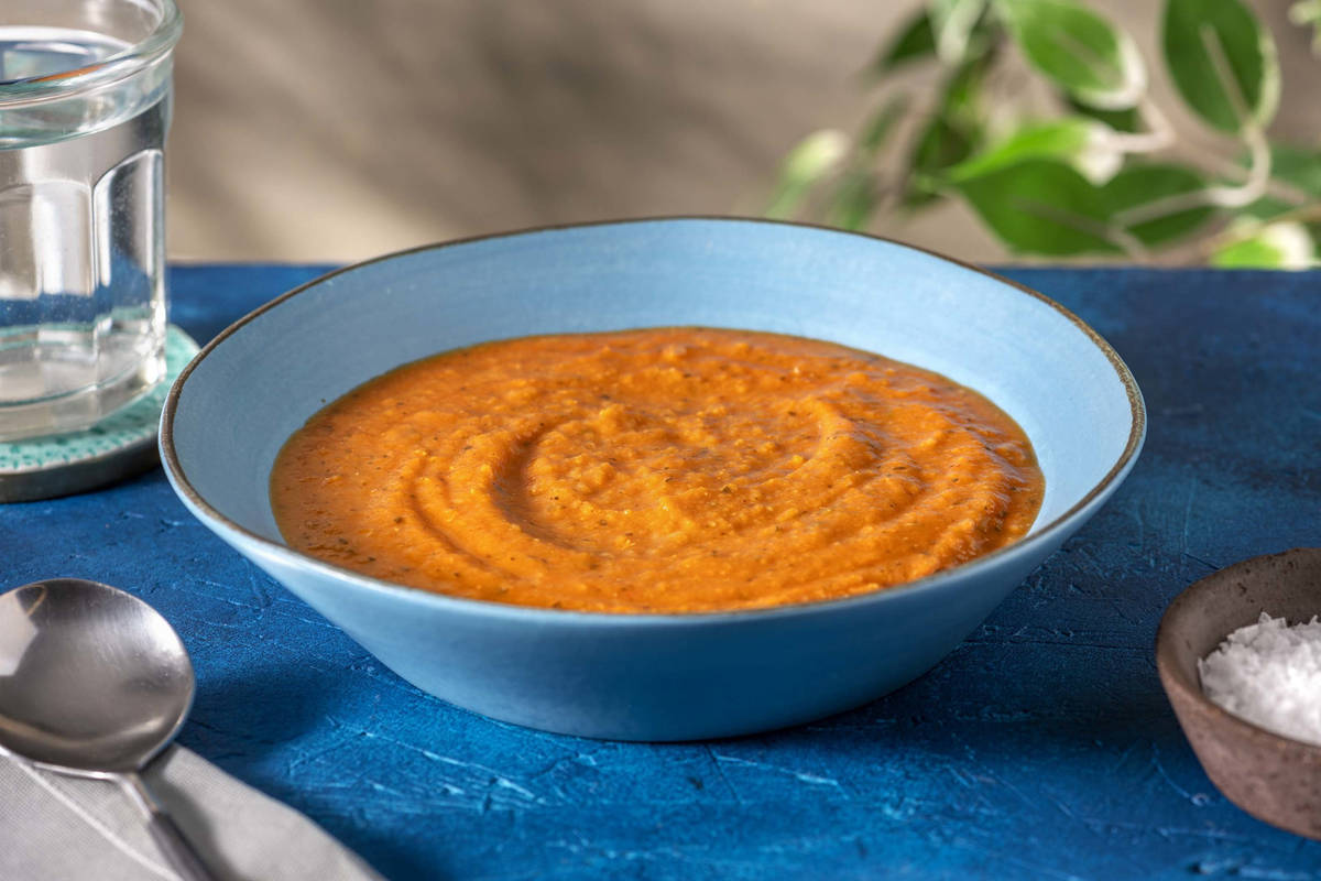 Zutaten: Wasser, Tomaten, Kichererbsen (17 %), rote Linsen, Zwiebeln, Karotte, Olivenöl, Sellerie, Salz, Koriander, Petersilie, Knoblauch, Ingwer, Paprikapulver, rote Paprika, Kurkuma, Kreuzkümmel, Zimt, Pfeffer, Safran Lagerung: gekühlt bei max. 7 °C Herkunft: Niederlande Inverkehrbringer: HelloFresh Deutschland SE & Co. KG | Saarbrücker Str. 37a | 10405 Berlin | Deutschland | www.hellofresh.de Kann Spuren enthalten von Eiern, Erdnüssen, Fisch, Glutenhaltigem Getreide (Weizen, Gerste), Lupinen, Milch, Schwefeldioxid oder Sulfiten, Senf, Soja, Schalenfrüchten: Mandel.