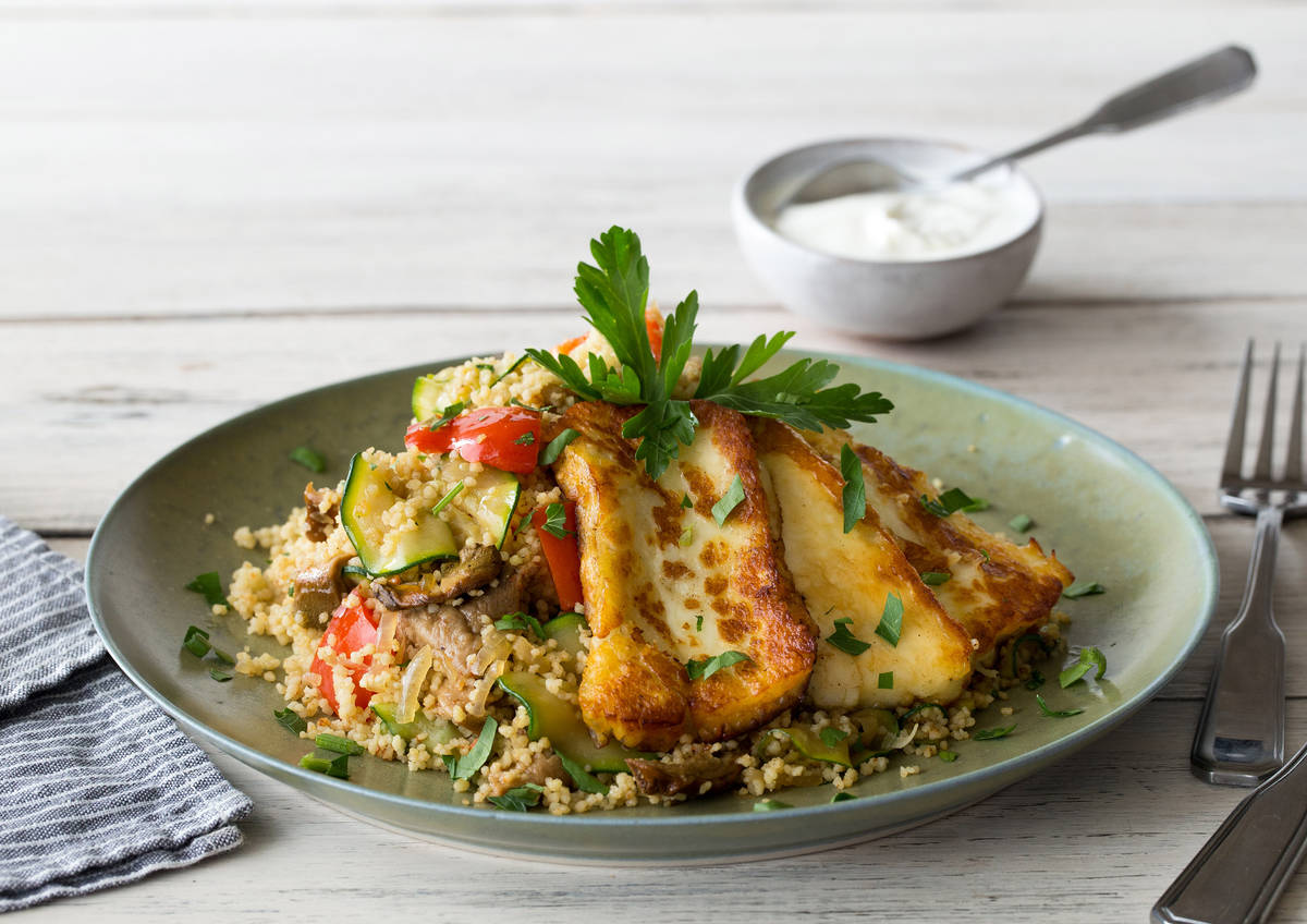 So ein Couscous-Salat ist schnell gemacht, lecker und unheimlich wandlungsfähig. Da er kalt so gut schmeckt wie warm, kannst du ihn auch prima zur nächsten Grillparty mitbringen und den Grillkäse auch wirklich grillen. In der Pfanne gebraten schmeckt er aber ebenfalls lecker. Guten Appetit!