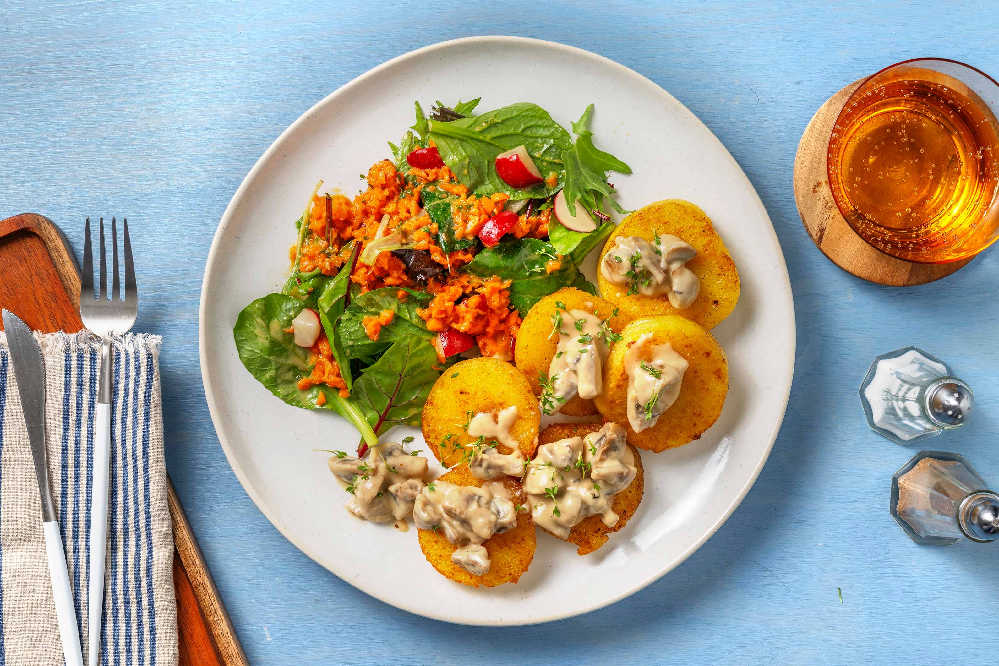 In einer großen Pfanne 1 EL [1,5 EL | 2 EL] Öl* erhitzen. Champignons darin 3 – 4 Min. braten, bis sie weich und gebräunt sind. Pfanne vom Herd nehmen.