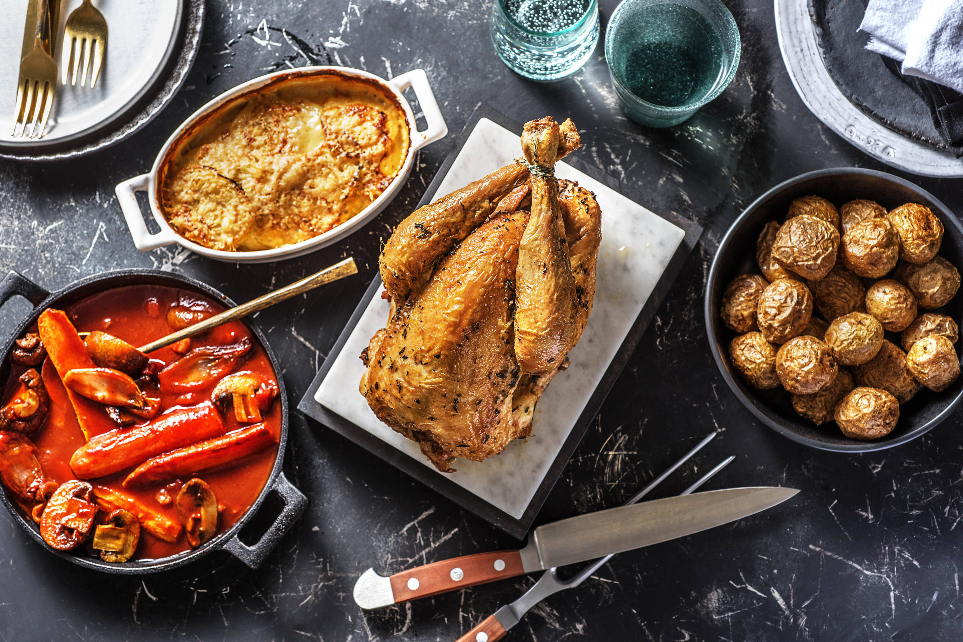 „Hello Muskat“ zugeben und einmal aufkochen lassen, bis die Soße ein bisschen eingedickt und das Gemüse weich ist.