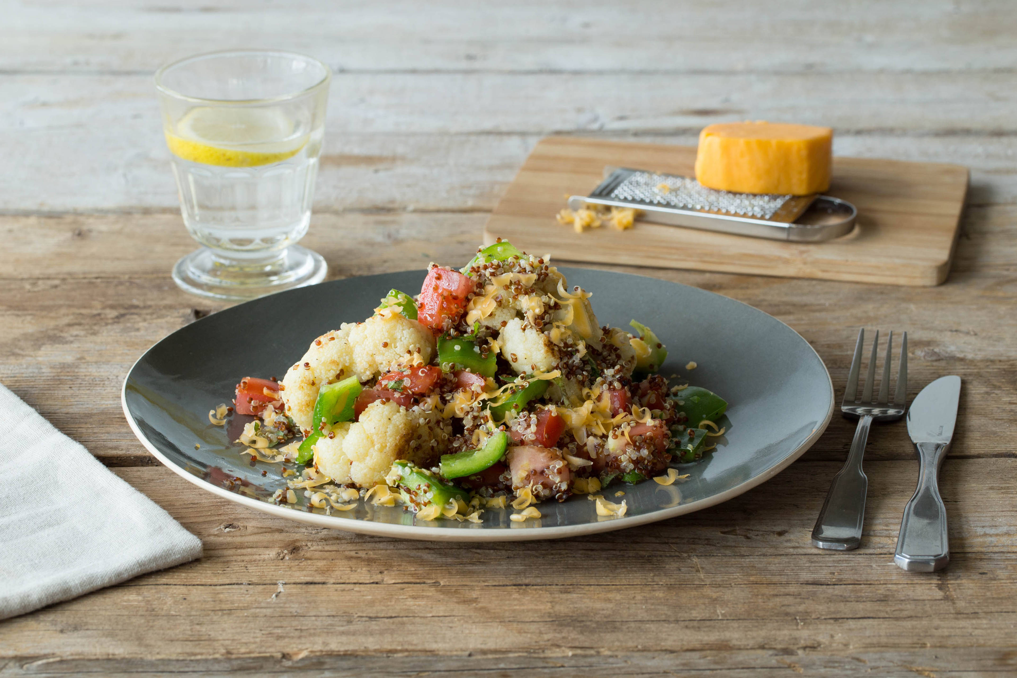 Mayonnaise, „Hello Paprika“ und 1 EL [1,5 EL | 2 EL] Öl* dazugeben und vermengen. Blumenkohlröschen mit der gewürzten Mayonnaise gründlich vermengen, sodass diese vollständig benetzt sind.