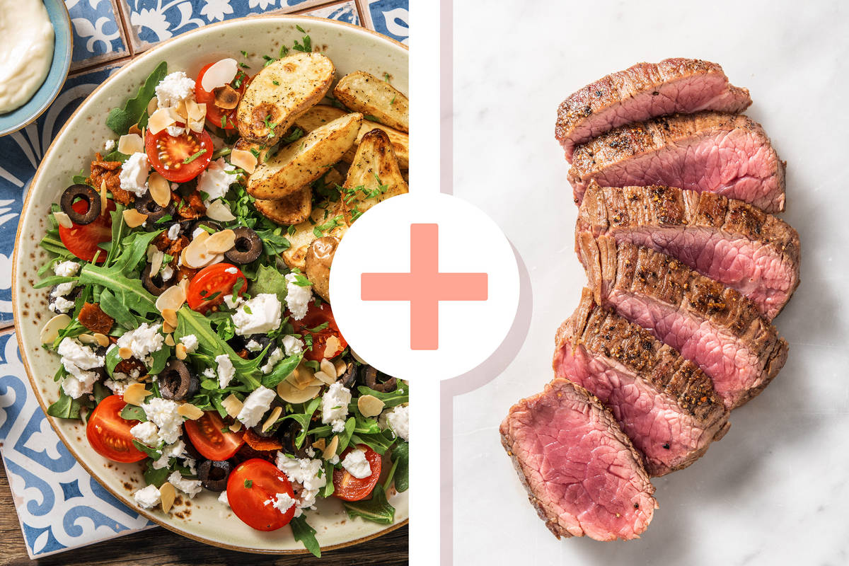 Mit unserem Extra Leckerbissen werden Deine sommerlichen Patatas Bravas zu einem ganz besonderen Geschmackserlebnis, denn dazu gibt es saftig-leckere Steakstreifen. Dazu gesellen sich Kartoffeln, Oliven, Hirtenkäse, Rucola und getrocknete Tomaten. Perfekt dazu passt Deine selbst gemachte Aioli, die eine schöne Knoblauchnote mit sich bringt. Wir wünschen Dir guten Appetit – genieß die Sommergefühle!