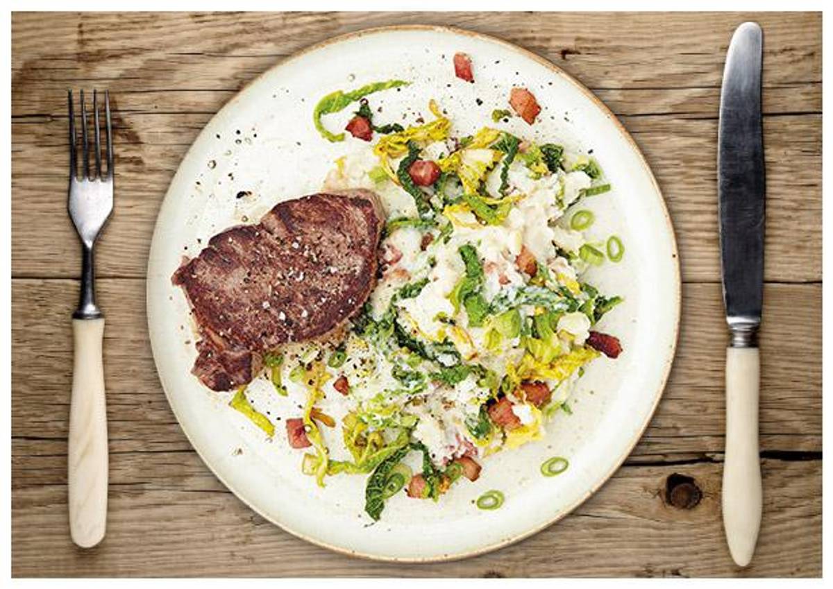 Saftiges Rindersteak an Wirsing-Speck- Kartoffelstampf