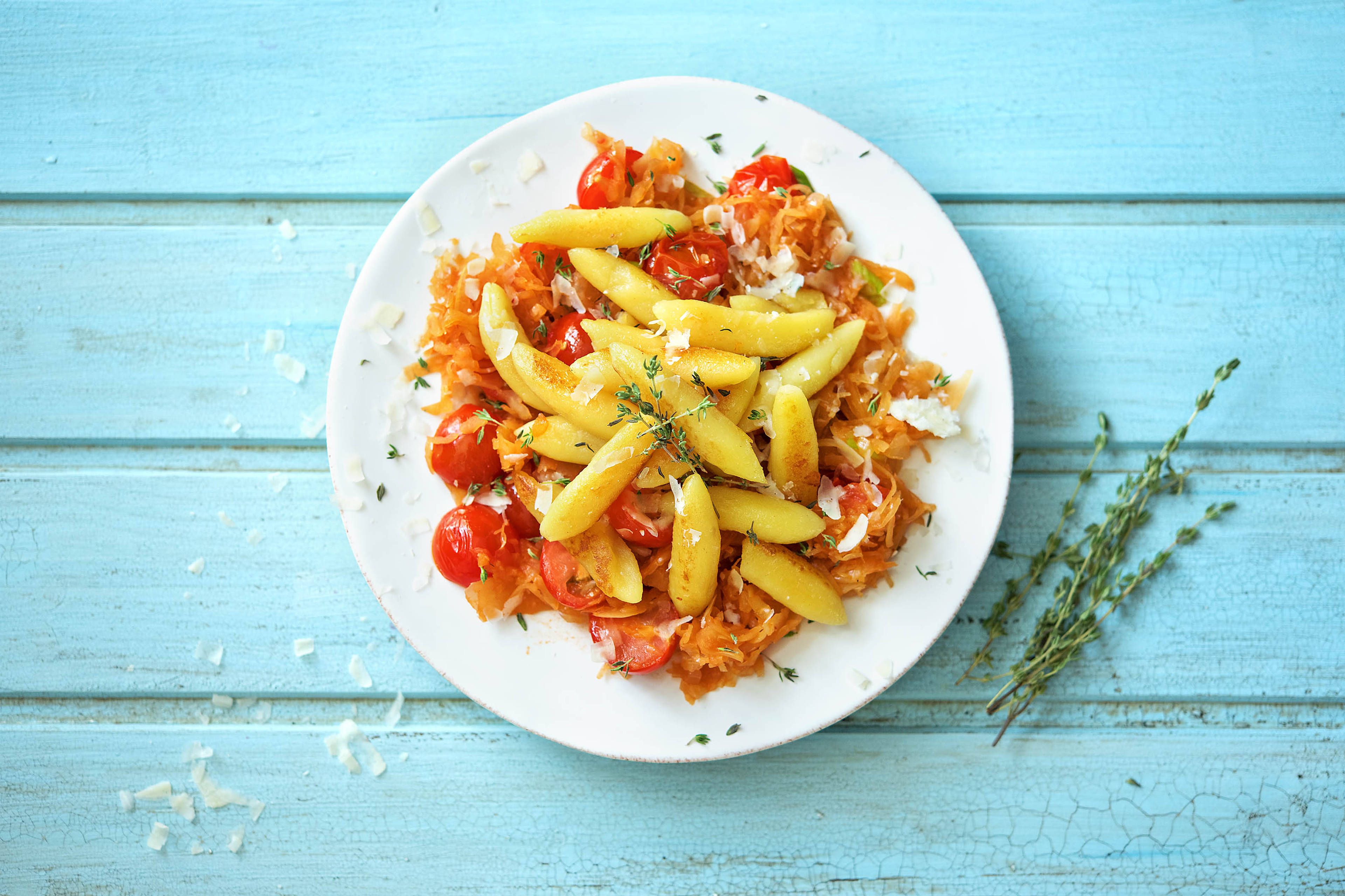 Tu Dir was Gutes! Unser heutiges Gericht wird bestimmt Dein Soul Food der Woche. Schnell und einfach zubereitet, hilft es Dir, nach einem langen Arbeitstag lecker zu entspannen. Mit Schupfnudeln ist so der Feierabend gerettet. Guten Appetit!
