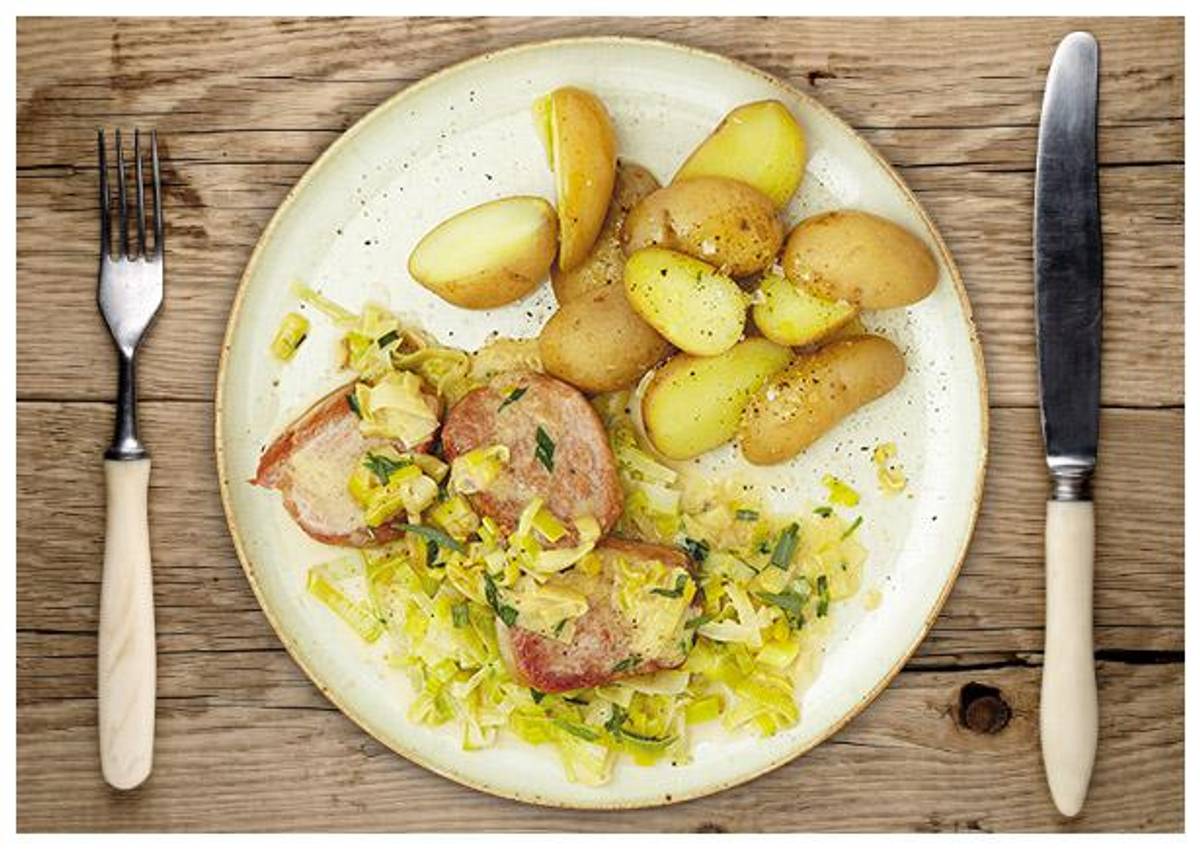 Schweinefilet Medaillons in feiner Porree-Estragon-Crème fraîche-Soße
