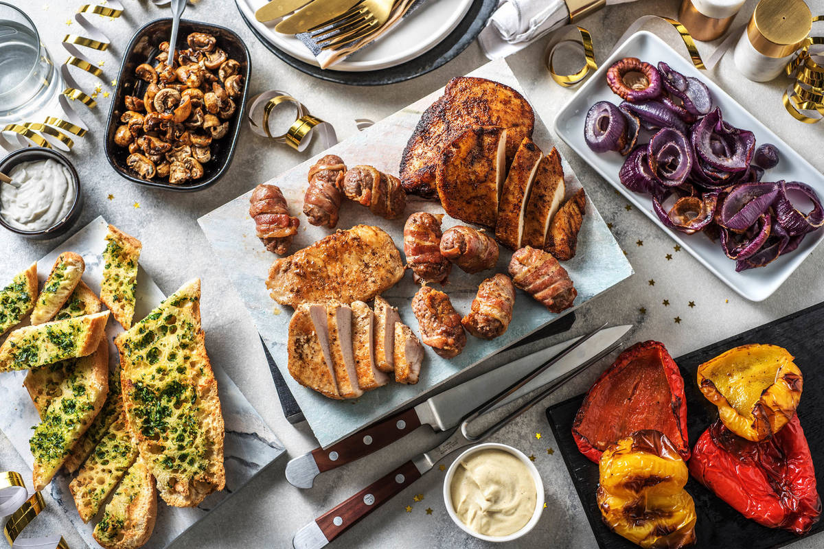 Wenn Du dieses Meisterstück für Deine Gäste kochst, dann schneide jetzt das Fleisch auf, richte es zusammen mit dem Gemüse auf Platten an und reiche die Dips und das Knoblauchbaguette dazu. Wenn Du einen Raclette-Grill hast, verteile die Dips und das Gemüse auf Schüsseln und reiche das noch rohe Fleisch zum Grillen separat auf Tellern. Viel Spaß und frohes neues Jahr!