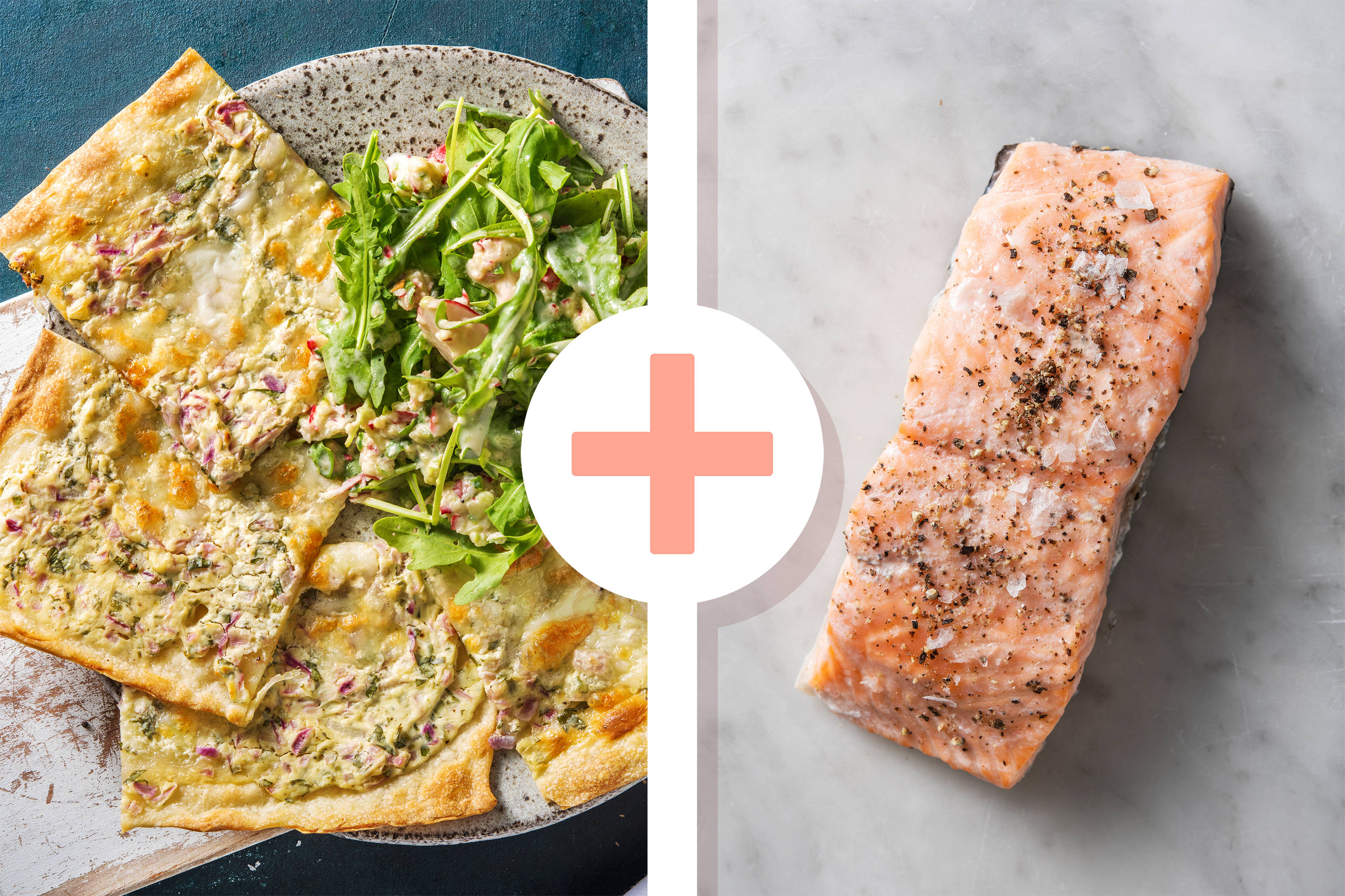 Spätzlepfanne einmal durchrühren, auf Teller verteilen und mit grünen Frühlingszwiebelringen toppen. Mit Lachs und Salat genießen.