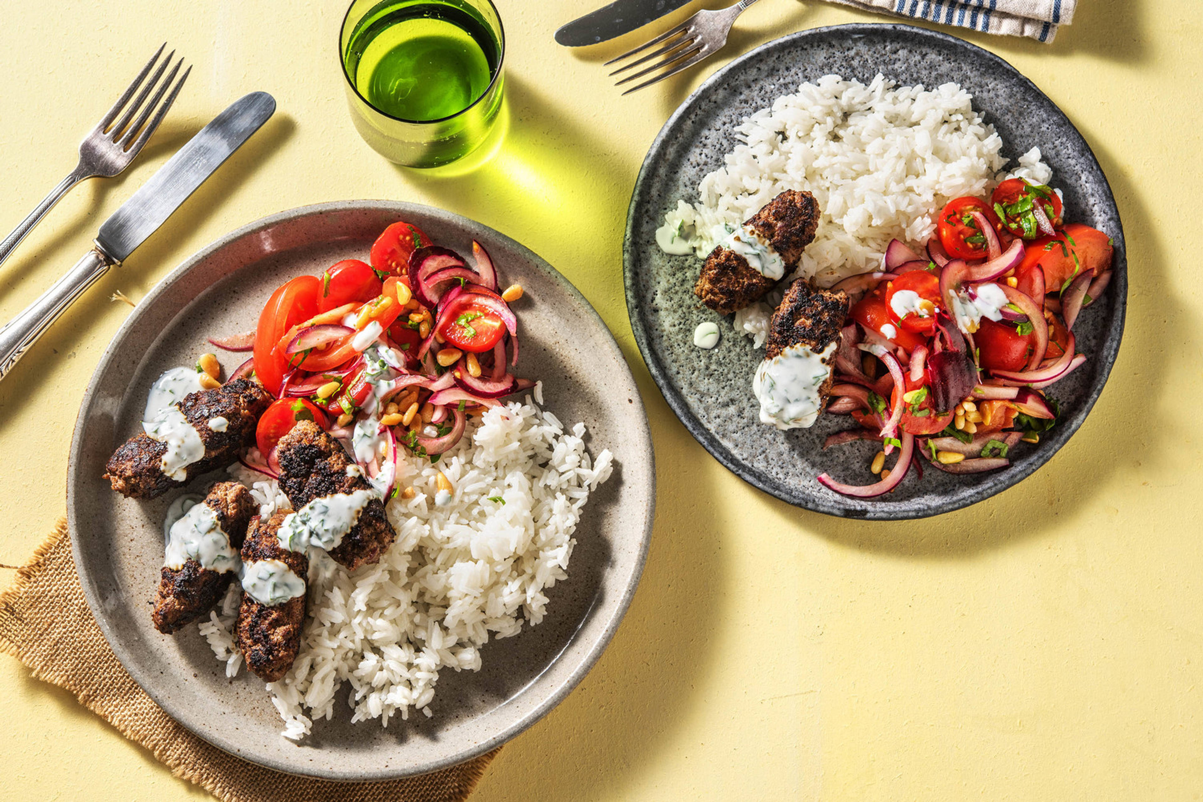 In einer großen Schüssel restlichen Sahnejoghurt, 1 EL [1,5 EL | 2 EL] Öl*, 1 TL [1,5 TL | 2 TL] Essig*, Salz* und Pfeffer* zu einem Dressing verrühren.