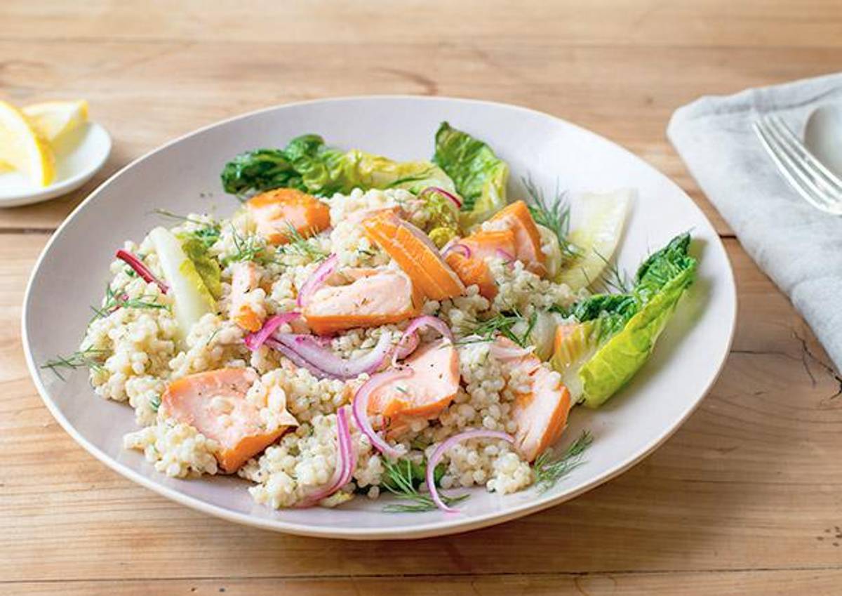Stremellachs auf lauwarmem Perlgraupen-Salat