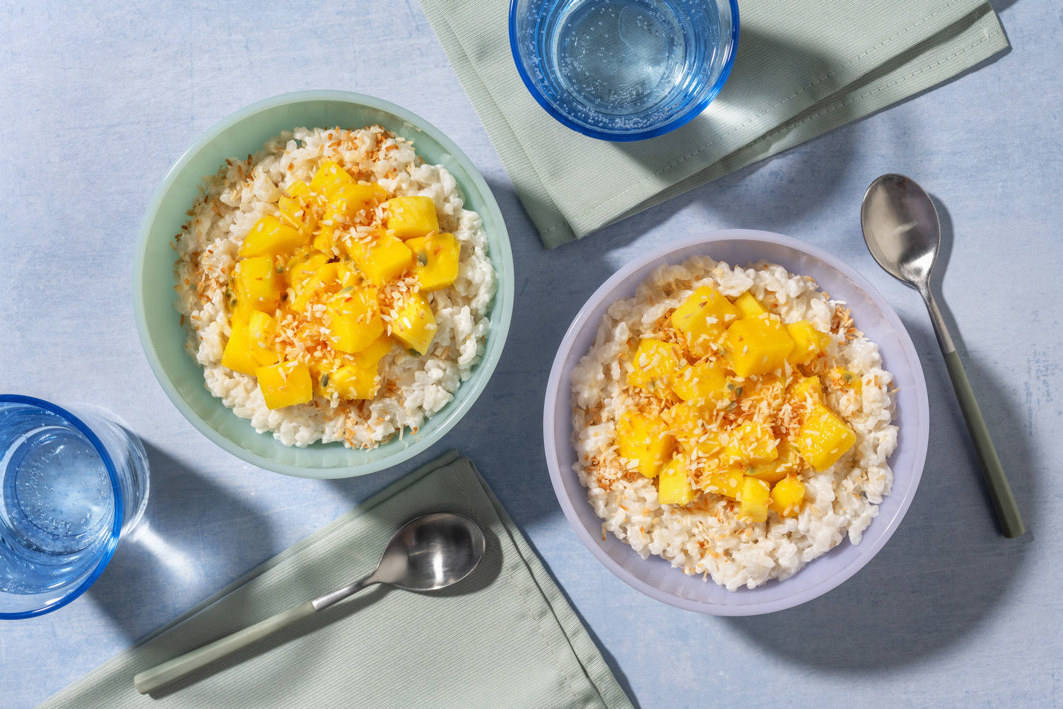Nach der Gemüsegarzeit Hälfte [drei Viertel | gesamte] Kokosmilch hinzugeben und alles mit einem Pürierstab zu einer sämigen Suppe pürieren.