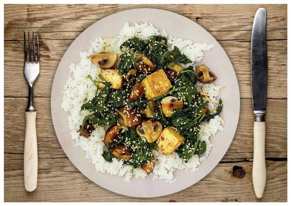Babyspinat, Schwarzkümmel-Reis und Cashews