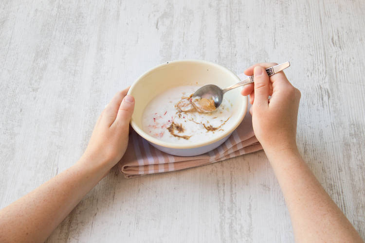 Für die Soße: In einer Schüssel Kokosmilch mit Ingwer, (je nach gewünschter Schärfe) Chili, Knoblauch, Sojasoße und Erdnussbutter gründlich miteinander vermischen.