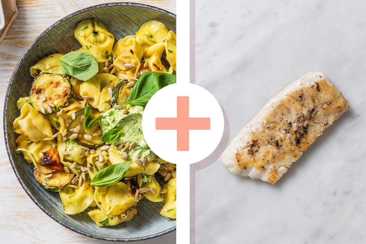 TIPP: Wenn Du den Schellfisch lieber ohne Haut genießen möchtest, kannst Du jetzt ganz einfach die Haut vom Filet abziehen. Das ist einfacher, als den Schellfisch vor dem Kochen zu filetieren. Die heiße Pasta auf tiefe Teller geben und mit einem Löffel kleine Kleckse vom restlichen Kräuterfrischkäse auf der Pasta verteilen. Mit Schellfisch toppen, Sonnenblumenkernen bestreuen und Basilikum dekorieren.